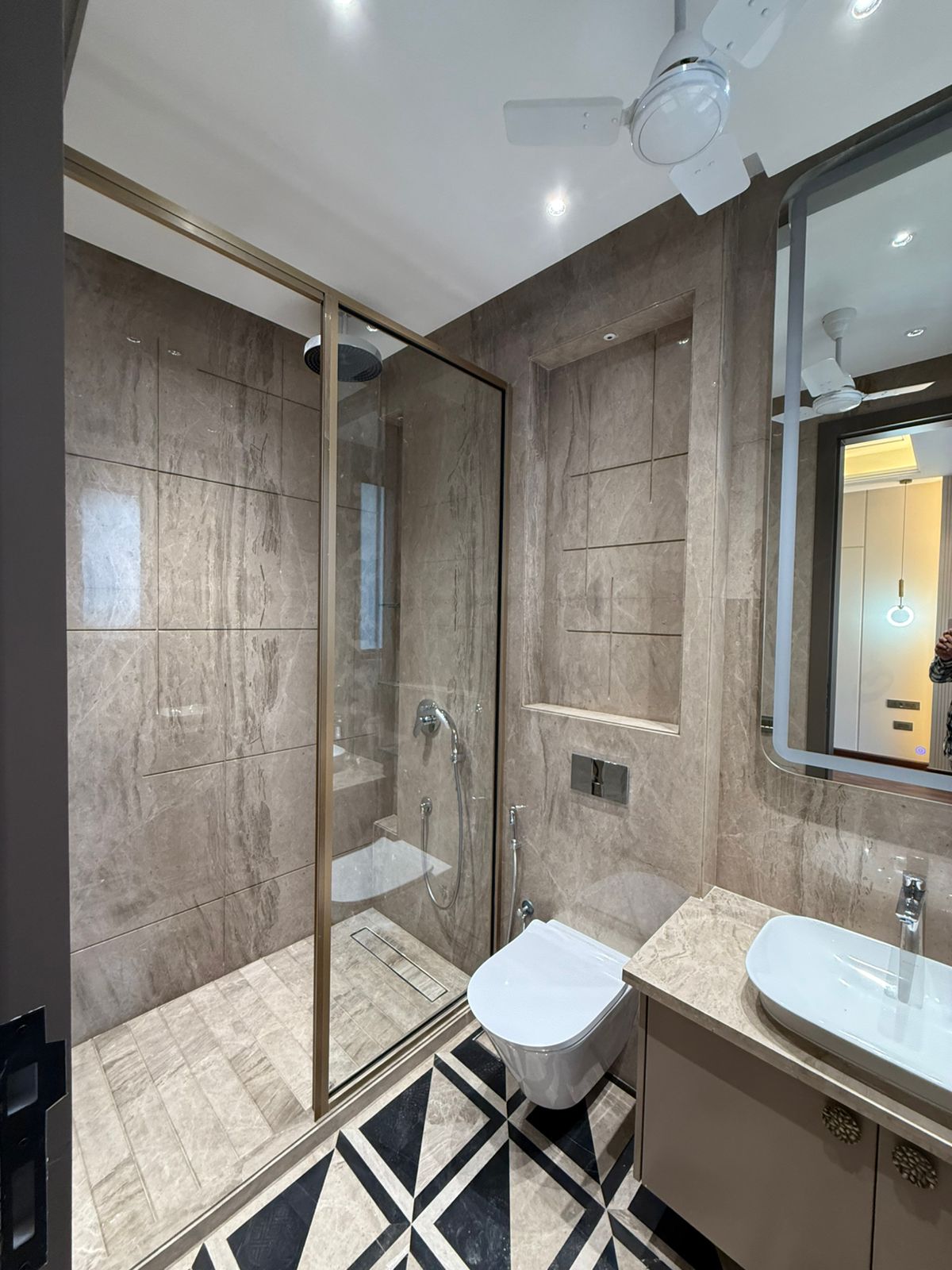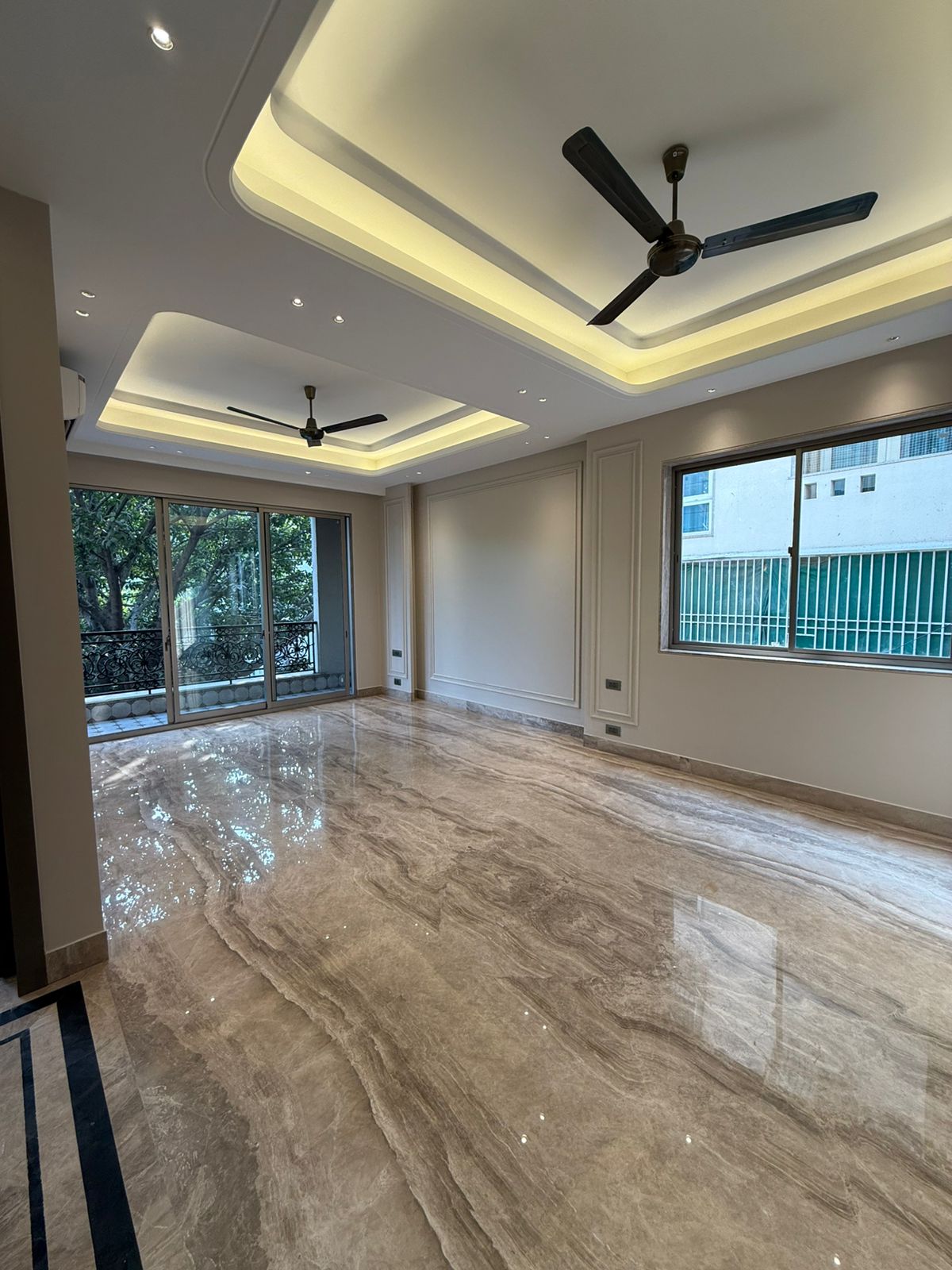 Step into an expansive living hall highlighted by elegant ceiling lighting that adds warmth and sophistication to the space. Multiple views of the hall showcase its seamless layout, modern ceiling fans, and excellent ventilation, making it ideal for both everyday living and entertaining guests.